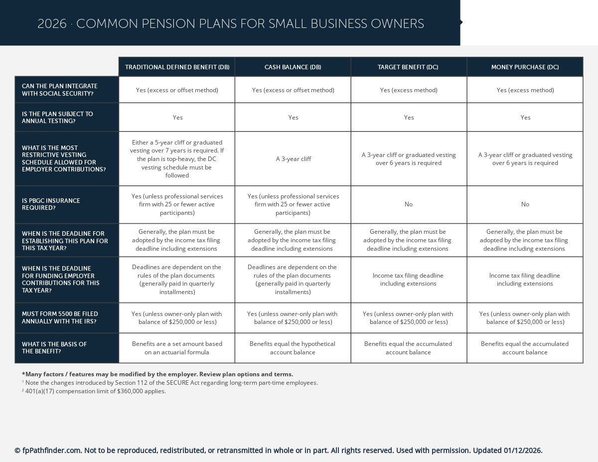 To frame a comprehensive discussion with your business owner clients, consider pairing this with the “Common Retirement Plans For Small Business Owners” guide.