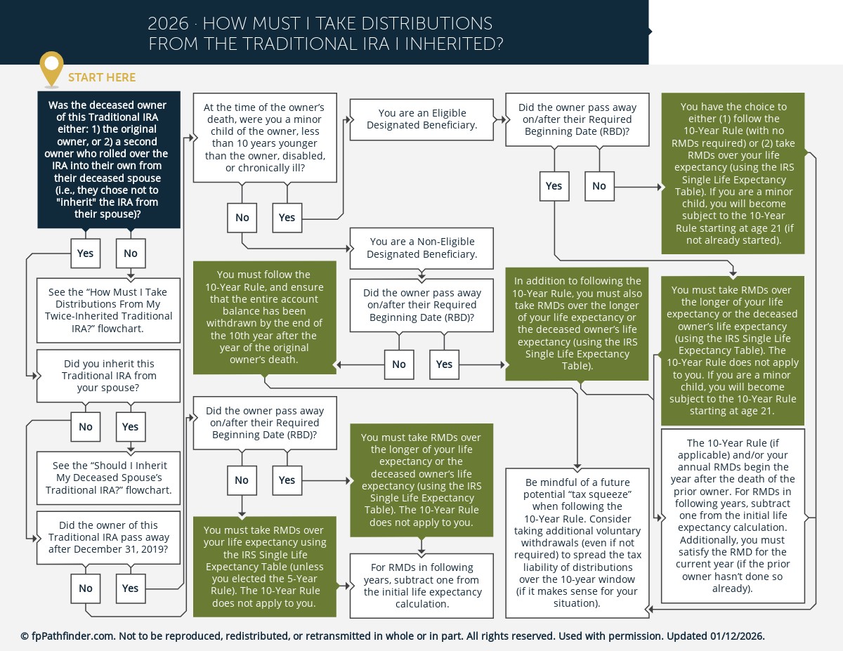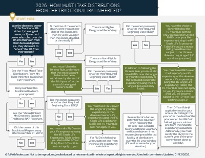 This flowchart covers important factors a client needs to consider when determining how they must handle distributions from their inherited traditional IRA, such as: