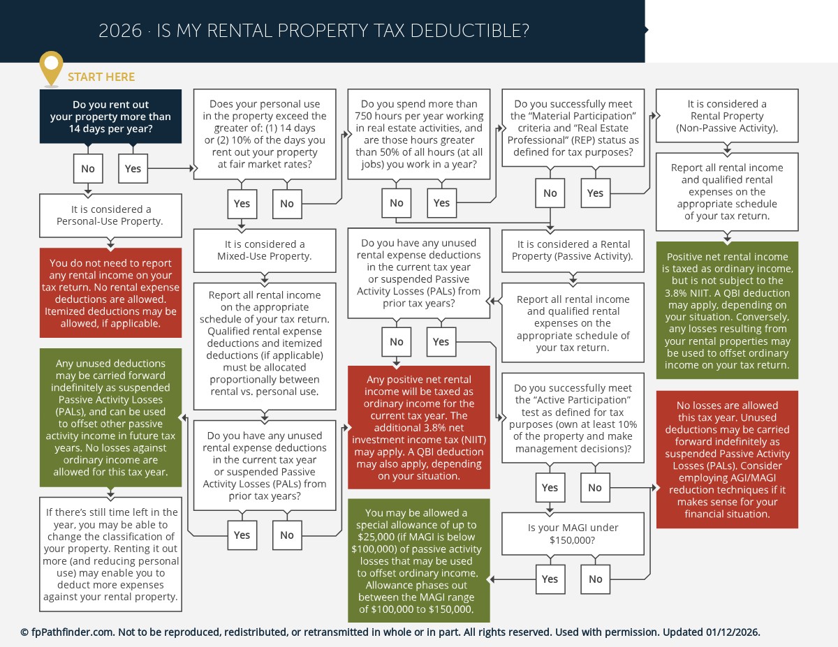 This flowchart covers important distinguishing factors and tax concepts a client needs to know of when renting their property, such as: