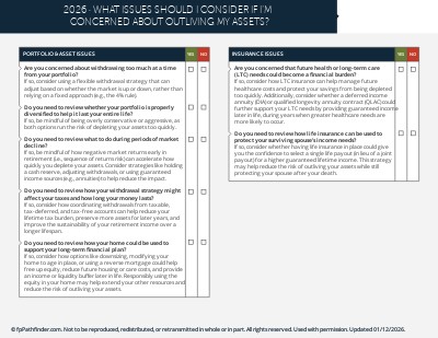 This checklist helps guide your conversations with clients who are worried about running out of money in retirement, and covers: