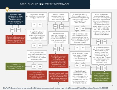 This flowchart covers important decision-making factors a client must consider when paying off their mortgage, such as: