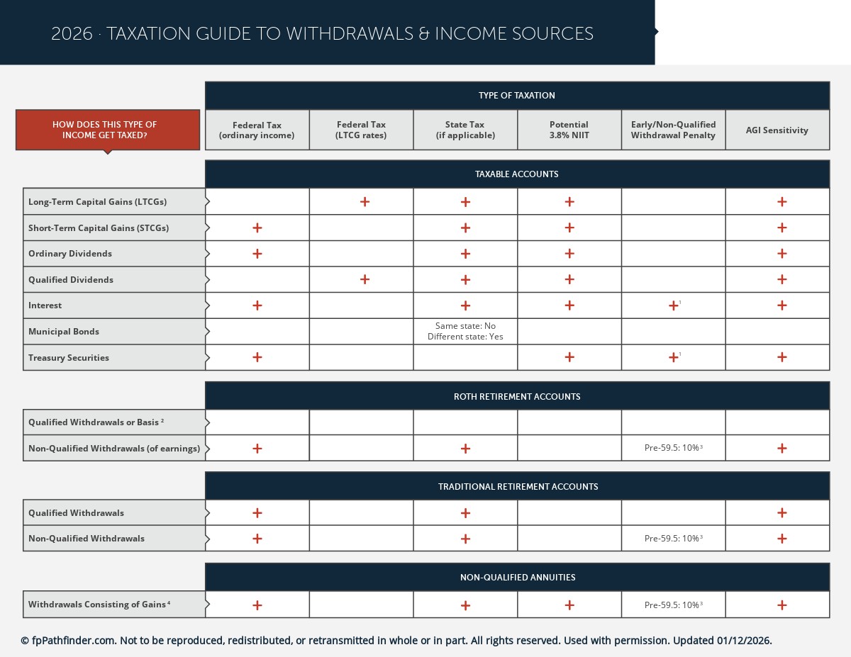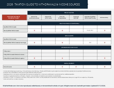 This guide provides a high-level overview of the various accounts or assets from which clients might pull funds for income or funding goals, as well as the tax consequences for each source.