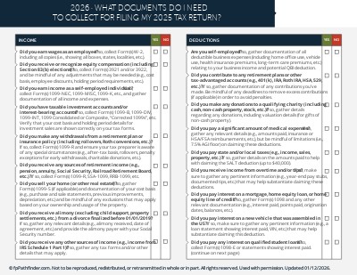 This checklist covers the key issues to consider when preparing to file one’s taxes, such as: