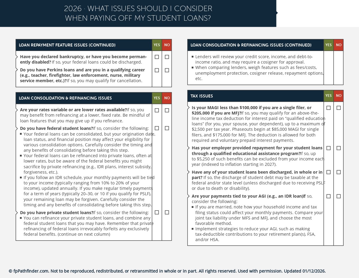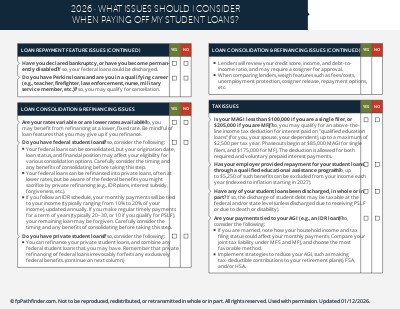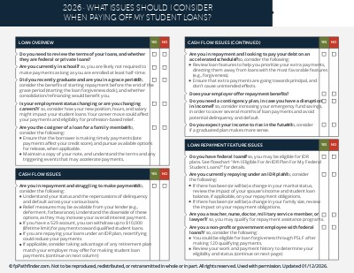 This checklist helps guide your conversations with clients when planning around their student loans, and covers: