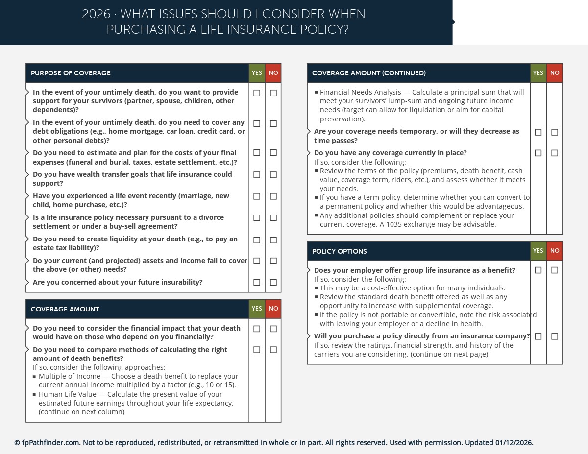 Life insurance is key to comprehensive financial planning, whether it serves a traditional risk management function or is put to another use. In the course of a client relationship, you will likely analyze the need to purchase a new life insurance policy at several points. This can be of particular importance with new clients who may be uninsured or underinsured and need to protect their loved ones.
