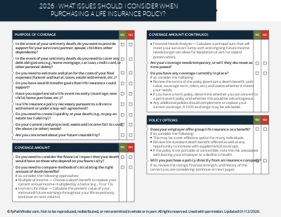 To help you guide your clients through an introductory life insurance conversation, we have created this checklist. It covers key considerations, including: