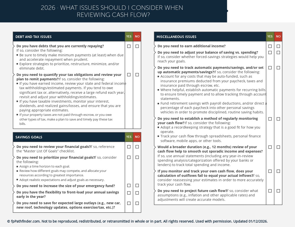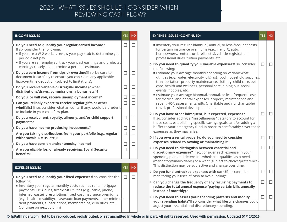 To help you guide your clients toward creating and managing a cash flow plan that supports their lifestyle and goals, we have created this checklist. It covers cash flow planning basics, including: